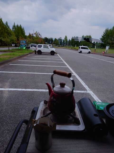 テントに薪ストーブをビルトインします。静かでいいキャンプ場ですよ。お日様が沈んで・・・