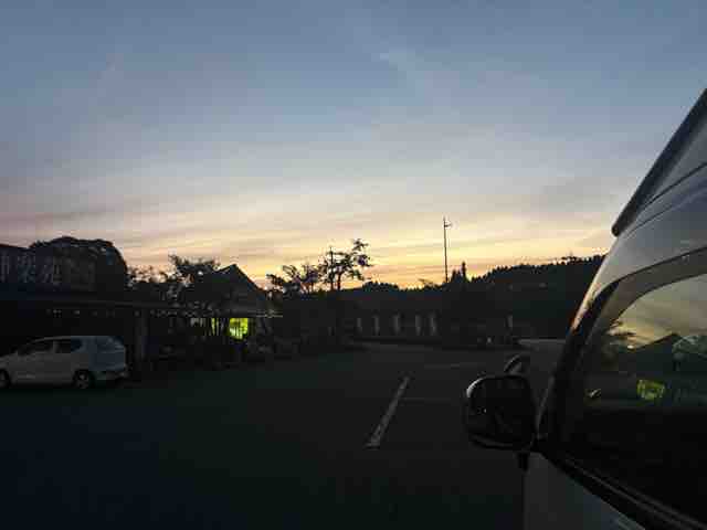 明け方、寒いテントから車内へ移動。FFヒーターを運転しますよ。電子レンジ稼働中。テ・・・
